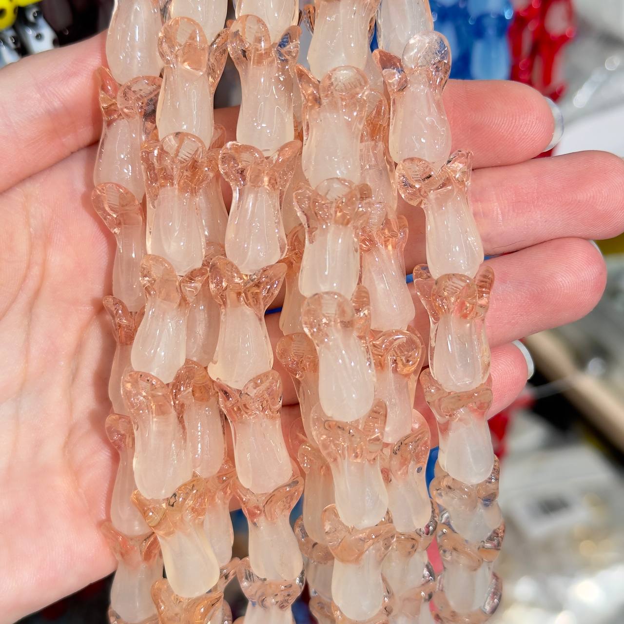 Дочка любит рукодельничать, постоянно делает браслеты, ожерелья, бусы и брошки. Стеклянные бусины в форме кубика не единственный товар, который я приобретала в этом магазине. Но они особенно понравились, своим перламутровым цветом и оригинальной формой. Бусы получились превосходные, даже я иногда одеваю на праздник. Стекло не хрупкое, довольно прочное. Все отверстия одинаковые и легко нанизываются на нитку или леску. Рекомендую данный магазин к покупкам товаров для рукоделия.